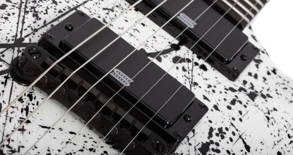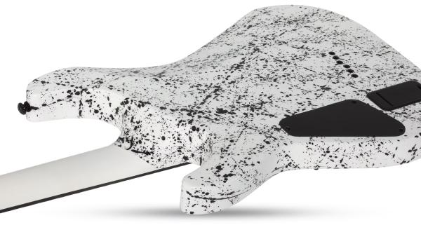 The SCHECTER C-1 Ink Bomb (#2986) is a tremendous solid body electric guitar, merging various influences (Mahogany wings, Maple thru-neck and 24 frets Ebony fretboard) and huge sounding active humbucking pickups Seymour Duncan Alt Metal Blackout.