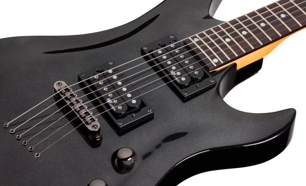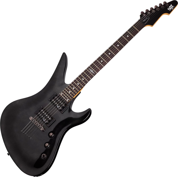 Inspired by Synyster Gate's model (Avenged Sevenfold's guitarist), the SGR BY SCHECTER Avenger #3825 (MBK) entice more specifically Hard-Rock and Metal players with its agressive humbucking pickups, Basswood body and 24 frets Rosewood fingerboard.