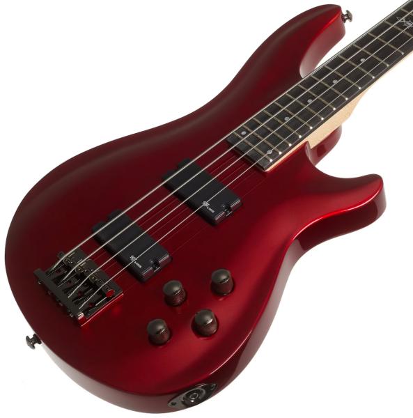 The SGR BY SCHECTER C-4 (Metallic Red) is an hybrid solid body electric bass merging traditional construction (Basswood body, Maple bolt-on neck with Rosewood fretboard, 34" scale) and modern elements (Schecter Diamond pickups, 24 frets, ergonomy) for maximum versatility and comfort.