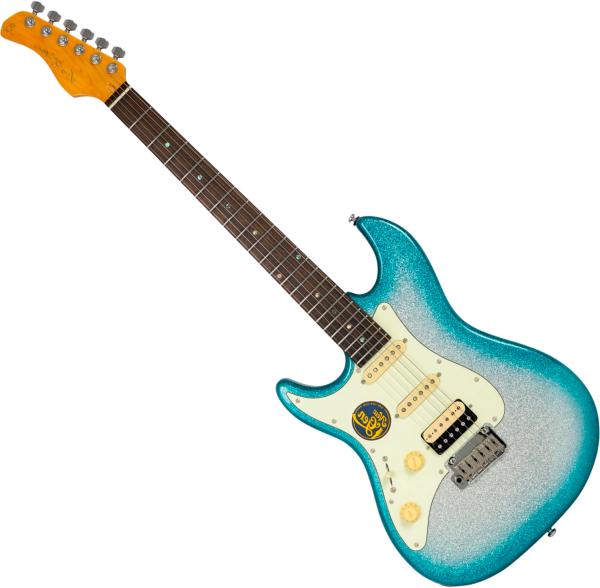 Imagined and supervised by the american legend who knows something about guitars, the SIRE Larry Carlton S7 HSS New Gen Left Handed (Skyburst Sparkle) solid body electric guitar is not an umpteenth copy of the Fender© Stratocaster©. If it uses the same basics like american Alder body, a bolt-on neck, Rosewood or Maple fretboard with 25.5" scale (22 frets, compound 9.5/14" radius), three single-coil pickups or traditional tremolo, it excels in terms of performances to price ratio.