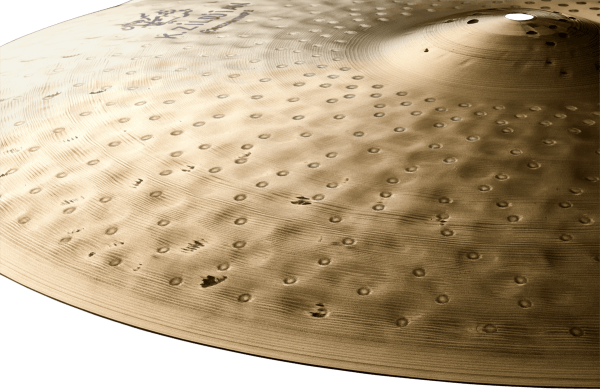 A K Constantinople cymbal is instantly recognizable! Its slightly domed, hammered appearance, from the rim to the top of the bell, its smooth, satin-finish patina, and the hammer marks that hint here and there at a rough part of the metal, make each wrinkle in this series a unique, identifiable instrument. Likewise, when played blind, the amateur (and a fortiori the connoisseur) can't go wrong, as the balance and length of the sound halo speak for themselves. A true tour de force that has spawned many others since.