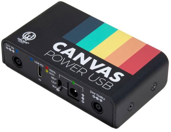 WALRUS AUDIO Canvas Series Power USB allows your rig to be powered by most USB Power Delivery (PD) supplies like laptop chargers, high power phone chargers, and even 30 Watt minimum USB PD battery packs !
