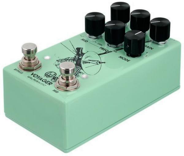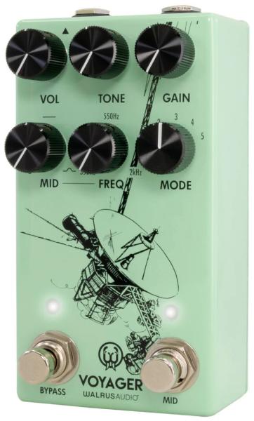 At lower gain settings, it brightens the signal and adds clarity to each note. With the gain turned up, the Voyager transforms into a thick overdrive, providing depth to chorded playing while retaining the clarity needed to break through solos.