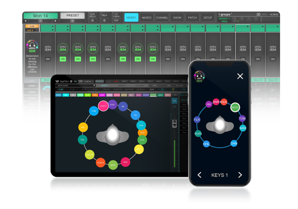 No external hardware is required—simply set any of the LV1’s outputs to IEM, and your artists will receive monitor audio in their headphones, via the Waves MyMon remote control app for LV1.