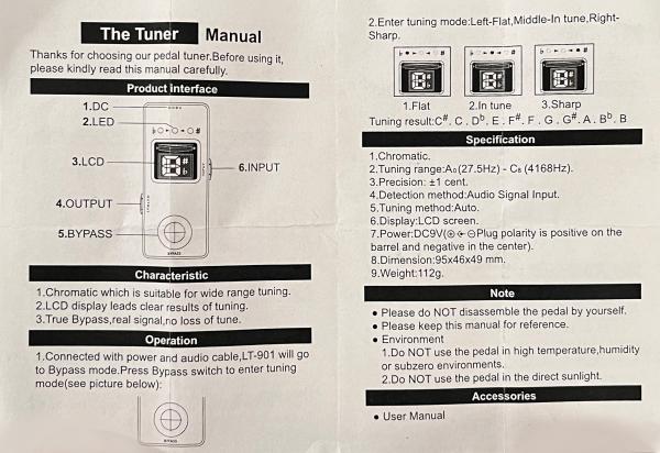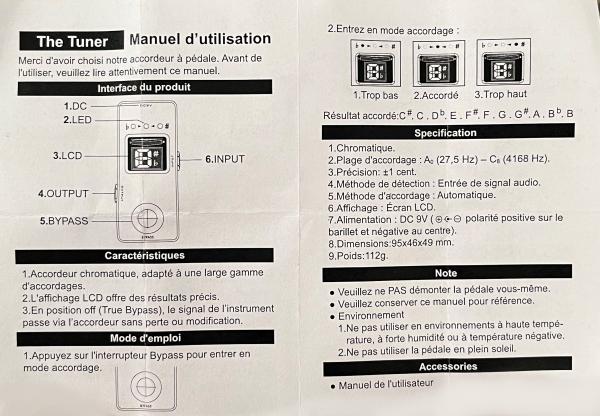 X-Tone's The Tuner is a precise and efficient tuner pedal. Its compact size guarantees it a place of honor at the beginning of your pedalboard chain, or it slips neatly into your guitar case. Its screen provides excellent visibility, even on less well-lit stages.